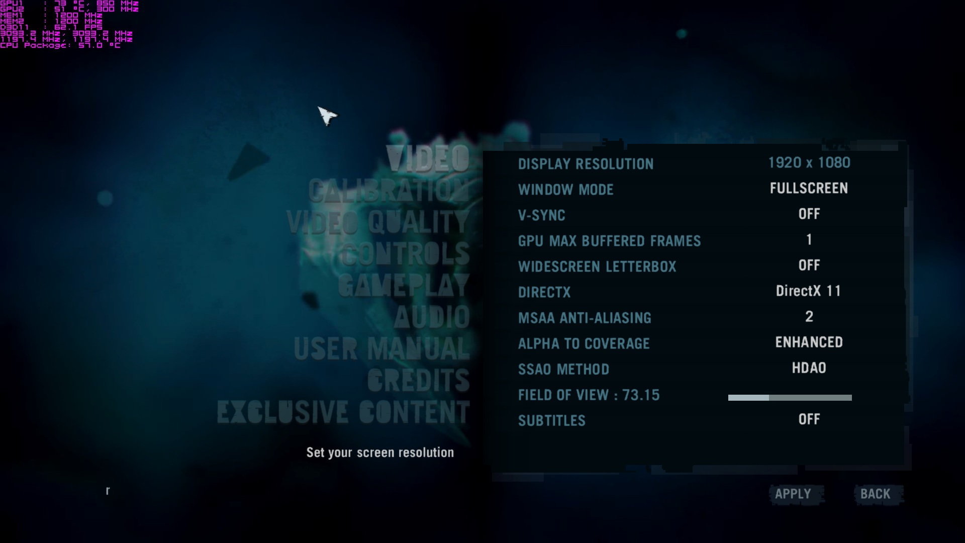 Running on 12.8, here are some gameplay pics on a single 7970m because crossfire is lagging for me atm. My FPS is 30-45 using the graphic settings shown.