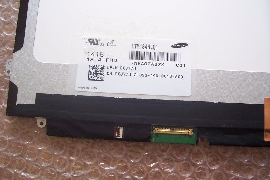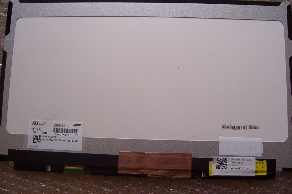 Hi first post (hope this thread is the place to post) My grandson has an Alienware 18 and the lcd screen got smashed from an accident. I pulled the unit apart to confirm the screen part, Dell part XJY7J which seems to be a Samsung 18.4 FHD part LTM184HL01 C01. Got a replacement sent from China to Australia AUD480 and when replaced the laptop gives 8 beeps (lcd fail) Triple checked connectors still the same. Put the original smashed back in and it fires up straight away.