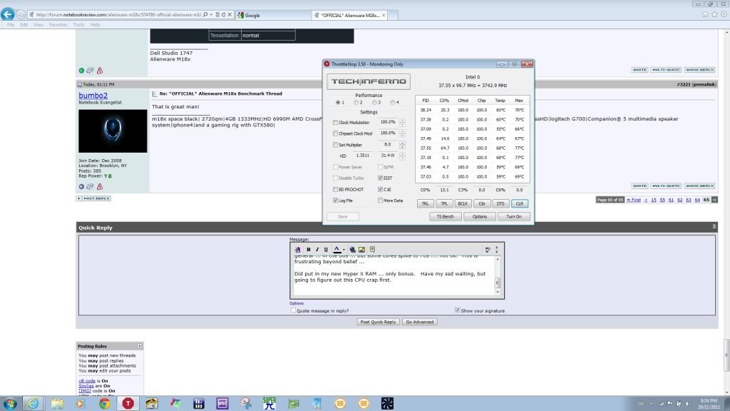 All the cores drop off to 8x in Thottle stop, Temps maxing at 56C ...