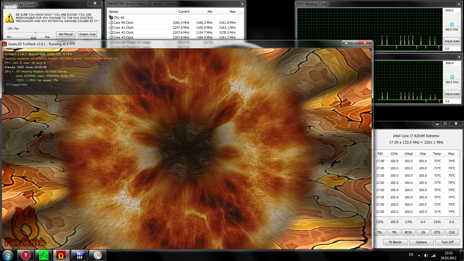 After installing 920xm GPU is start trottle to 300/400 when pushung prime and furmark.