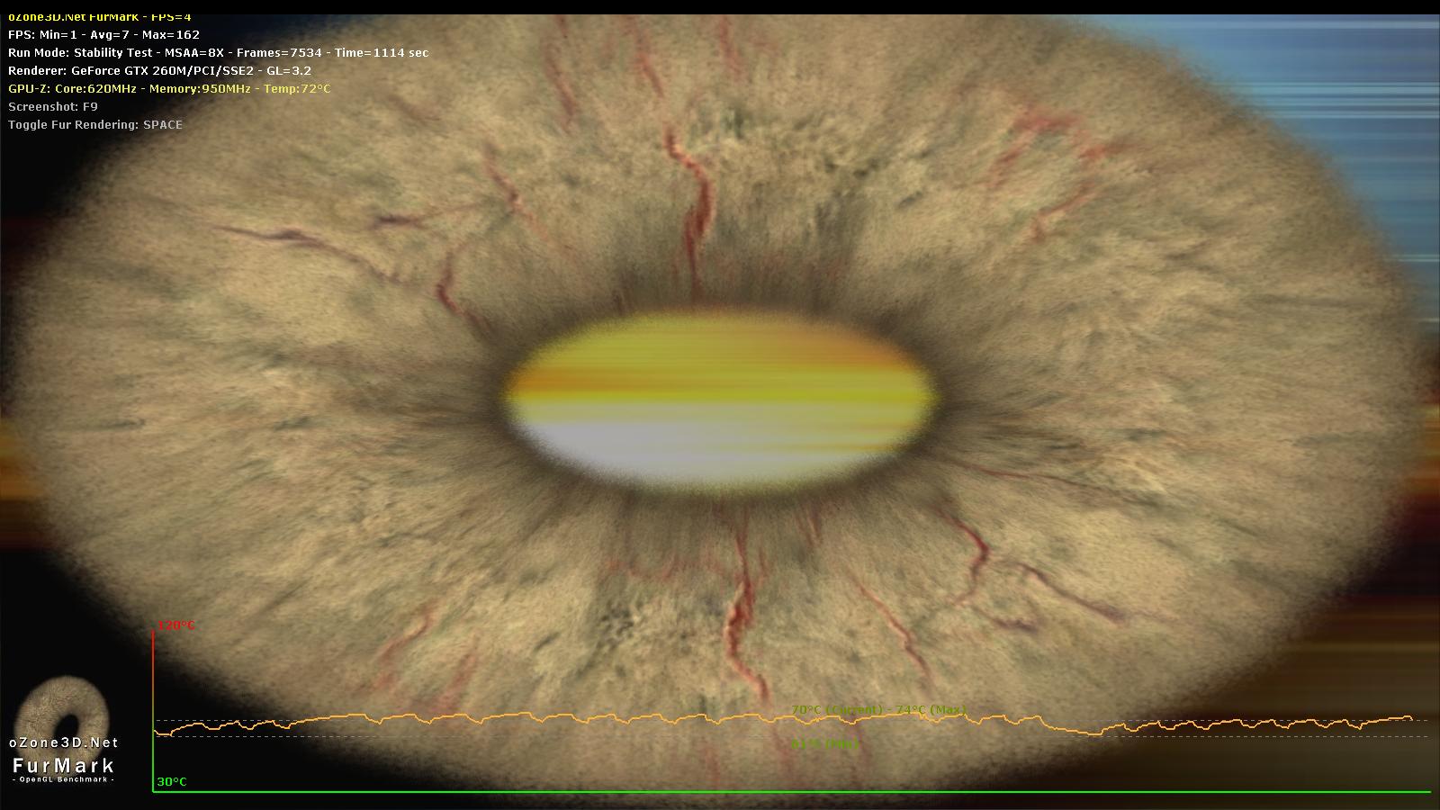Furmark: 1600x900, 8xAA, stability test, xtreme burn