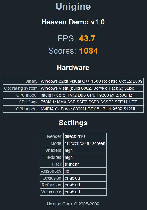 Already did one of those DX10 runs when I had done the initial run. I got the exact same result, with the difference of maybe 0.3 more FPS and 1 extra point over D3D11, which I assume was a fluke because no two results will always be the same.