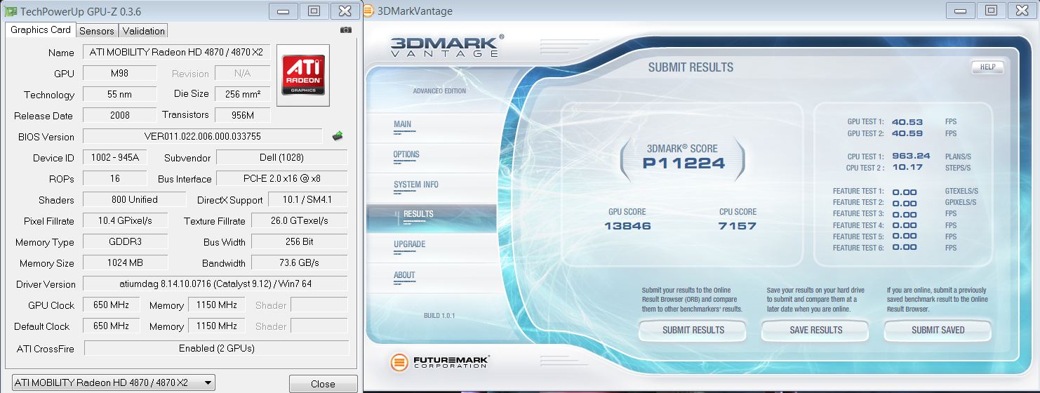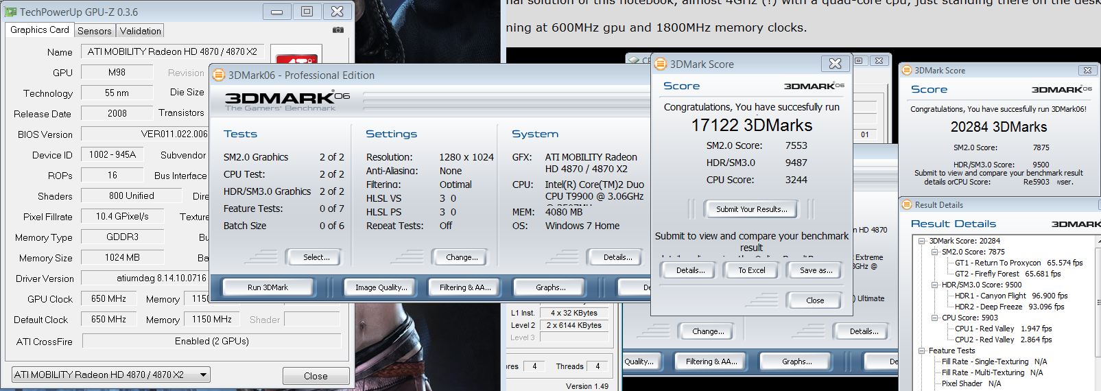 As for your cards getting the results they're getting. . . c'mon. Is it any surprise? You've got an edgy, true next-gen desktop GPU, and your GPU's theoretical FLOP rating is beyond amazing. Even the top-notch mobile cards in dual configuration are barely passing the 1 teraflop mark. I don't consider mobile cards anywhere near next gen. I'll be surprised if the true next generation of mobile GPUs match that kind of performance from the start. -