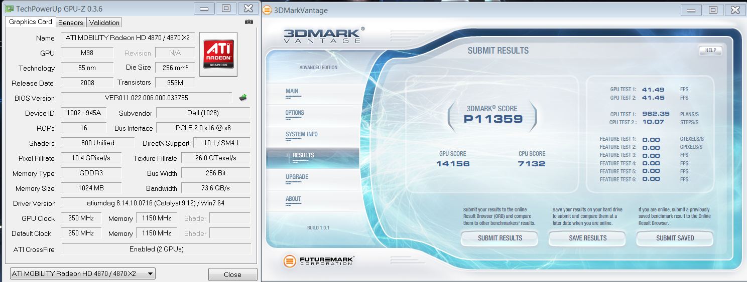 Thanks striker! I haven't exhausted all my options yet. I'll hit the 20K mark assuming the 4850s I get play well with OC'ing. For the M17x I may still need more CPU voltage but if I can make it up the deficit with a higher GPU score I may be able to do it. I'm going to put my qx9300 in my M17x now.