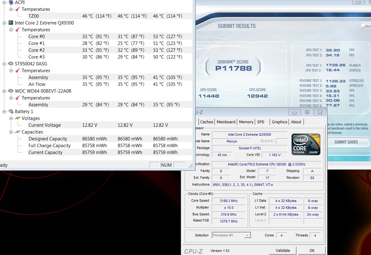 and i run stable at 3.06 with my qx9300 and get 16878...which was crazy for me ...lol...and i have never overclocked my gpu yet ,,,kinda nervous about it...but right now i am running mem 1280 and fsb 1240 ....and it works ok ...ok fine i do want to go higher...just need help //// -