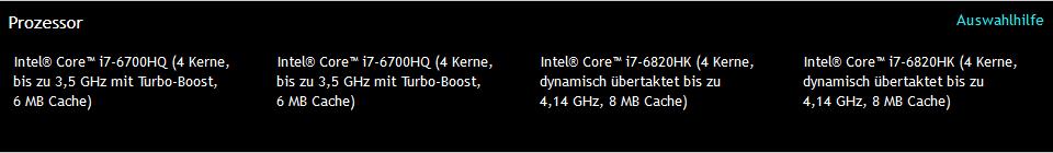 ~ i7-7820HK (up to 4.4Ghz 8MB Cache)