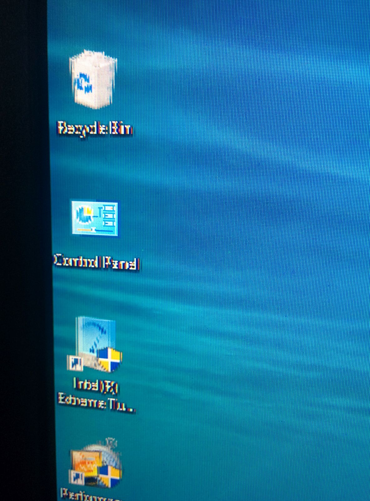 Both photographs look exactly like what happened to my work PC. It has a built in APU that couldn't handle the 2560X1440 resolution of my new monitor (Windows thought it could and set that resolution), so I had to upgrade the PC. As an interim fix I just had to lower the resolution to 1920X1080 and it looked normal.