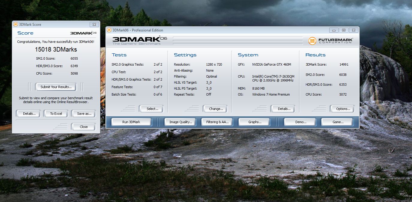 The reason for theif1956 running 3dmark06 @ 1280x720 is because its a common ground for us to bench and compare at. The 1600x900 screen, for whatever reason, will not default to 1280x1024.Attached Files: