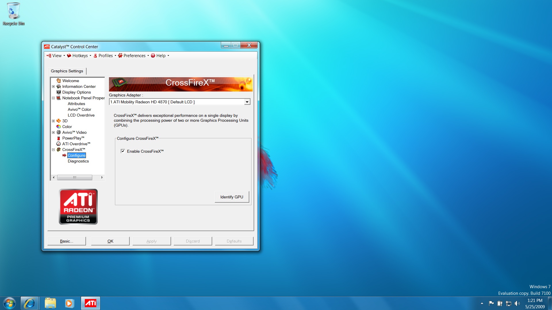 Ok just ran Vantage and it did not like the second card. I need to test some more, ati says the cards are linked. Vantage may not work right due to windows 7. Is there another way i can test this card?