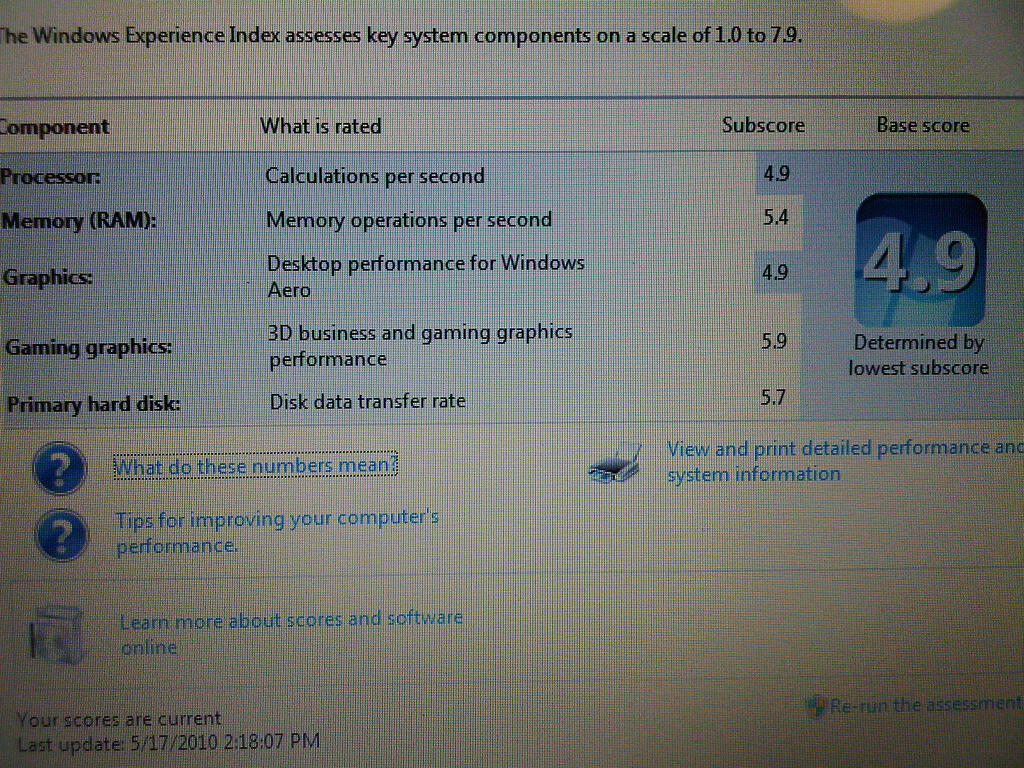 PS To confuse us all even more, a month ago, a review by a Taiwanese reviewer showed the WEI graphics scores as 2.9 / 5.4. -