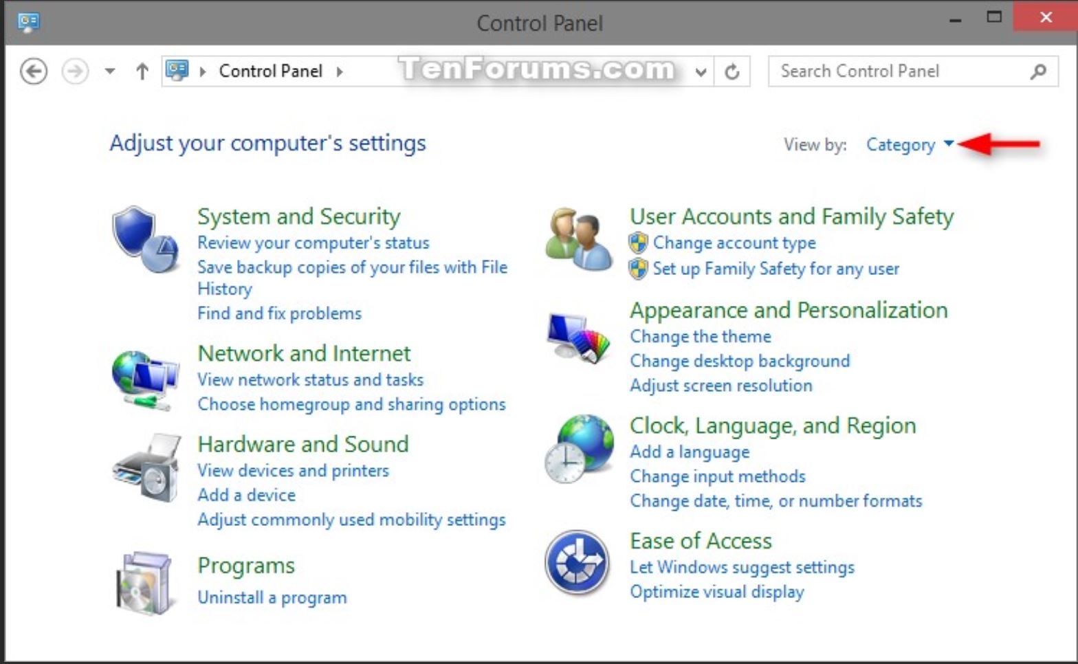 Finally, if this is your first time accessing the Control Panel it will default in View by: to Category view so change it in the Drop-down to either Small or Large icons so you can find it and other applications you may need easier.