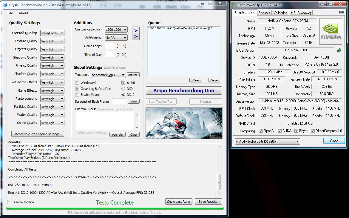 CRYSIS BENCHMARKS - Magnus72 custom Tweaked configs - 9800m GTX SLI 600/1500/900 driver 265.90q - Windows 7 x64- Crysis 1.2.1 x64 DX10