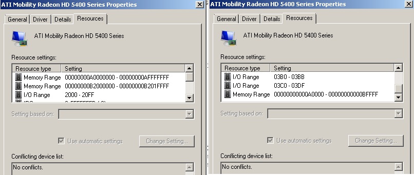 Two: Trying to understand what PCI allocation my bios is using for the internal 5470 mobility. From device manager I see it has 3 memory allocations: