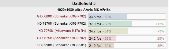 Unfortunately the site did not test 7970m so we could compare both with the same testing methodology
