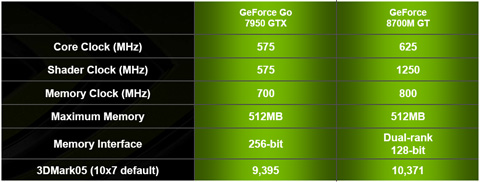 Contrary to what most people think, the 8700M GT is still considered a high-end DX10 card... though it may have a dual-rank 128-bit mem interface.