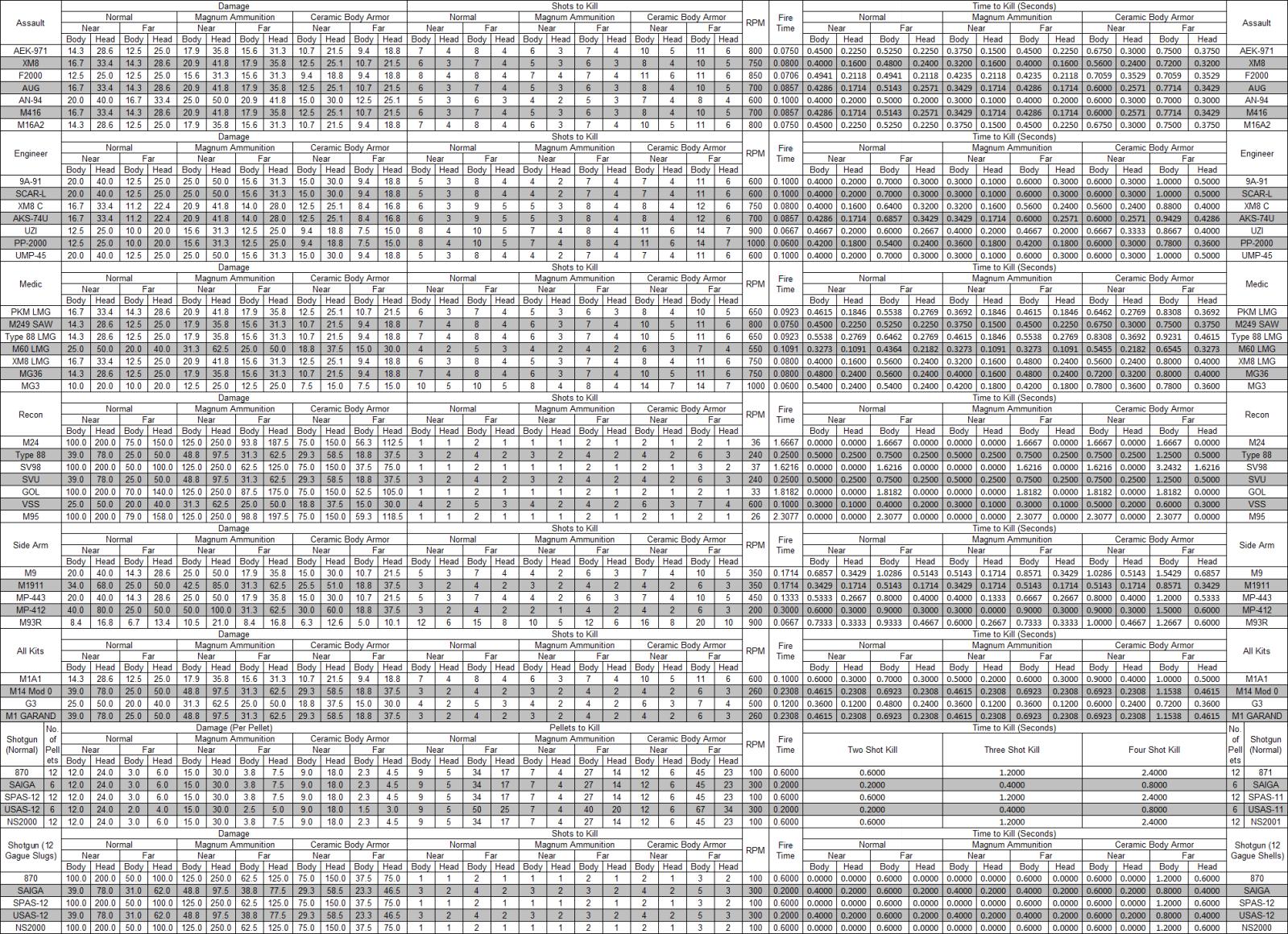 Thanks for that chart mew, seems the damage indicators for the weapons are not super accurate. Will most def be switching back the the m1911 for my sidearm.