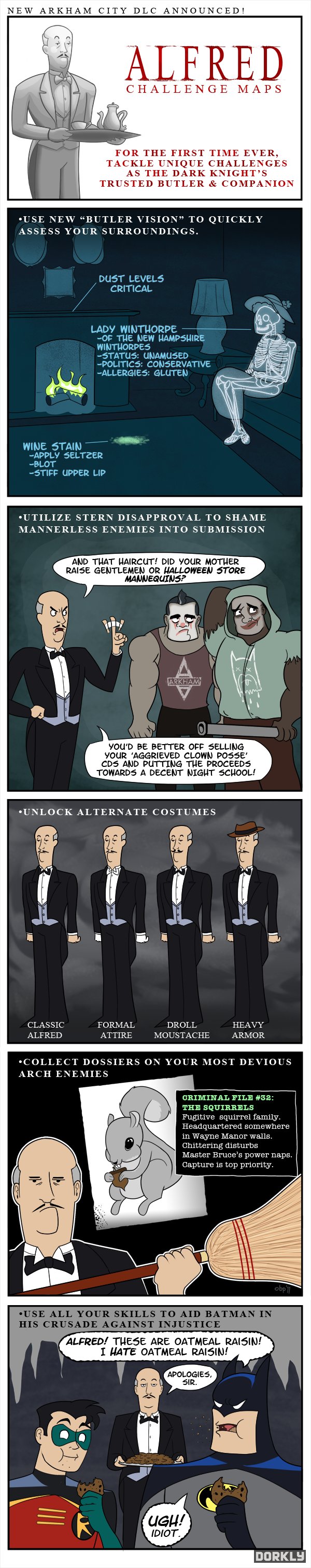 OMG! That Alfred DLC parody cartoon is so funny that I nearly cried due to the laughter.