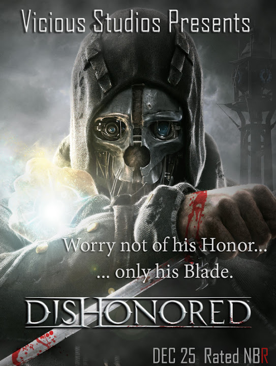 (1) Enter the contest by posting below your own original movie poster for Dishonored. It could be a violent steampunk thriller along the lines of the actual game, or perhaps re-imagined as a completely different genre, even a joke parody which makes fun of the game.