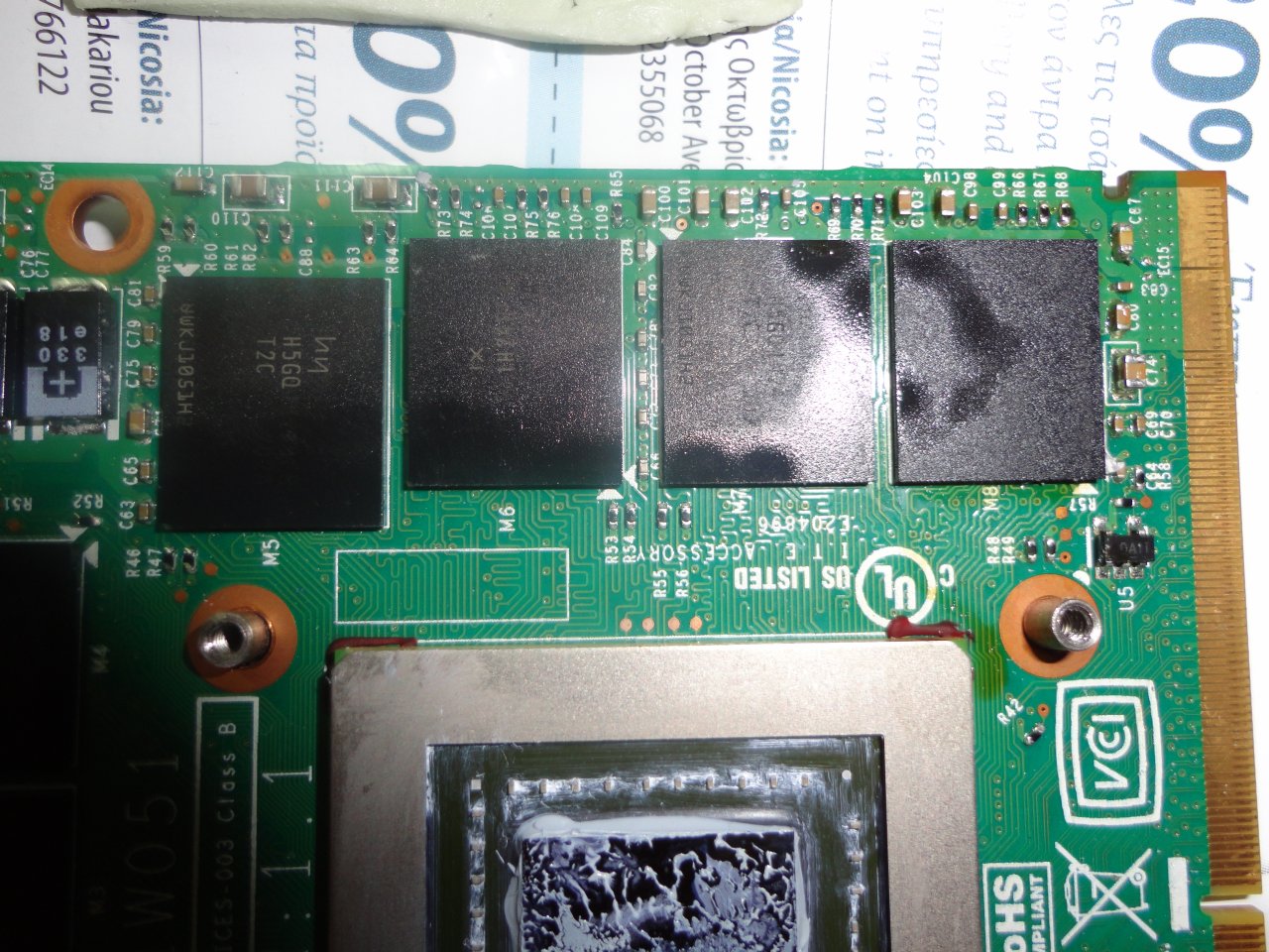 GTX 580M burnt - probably of oily substance from thermal pads.