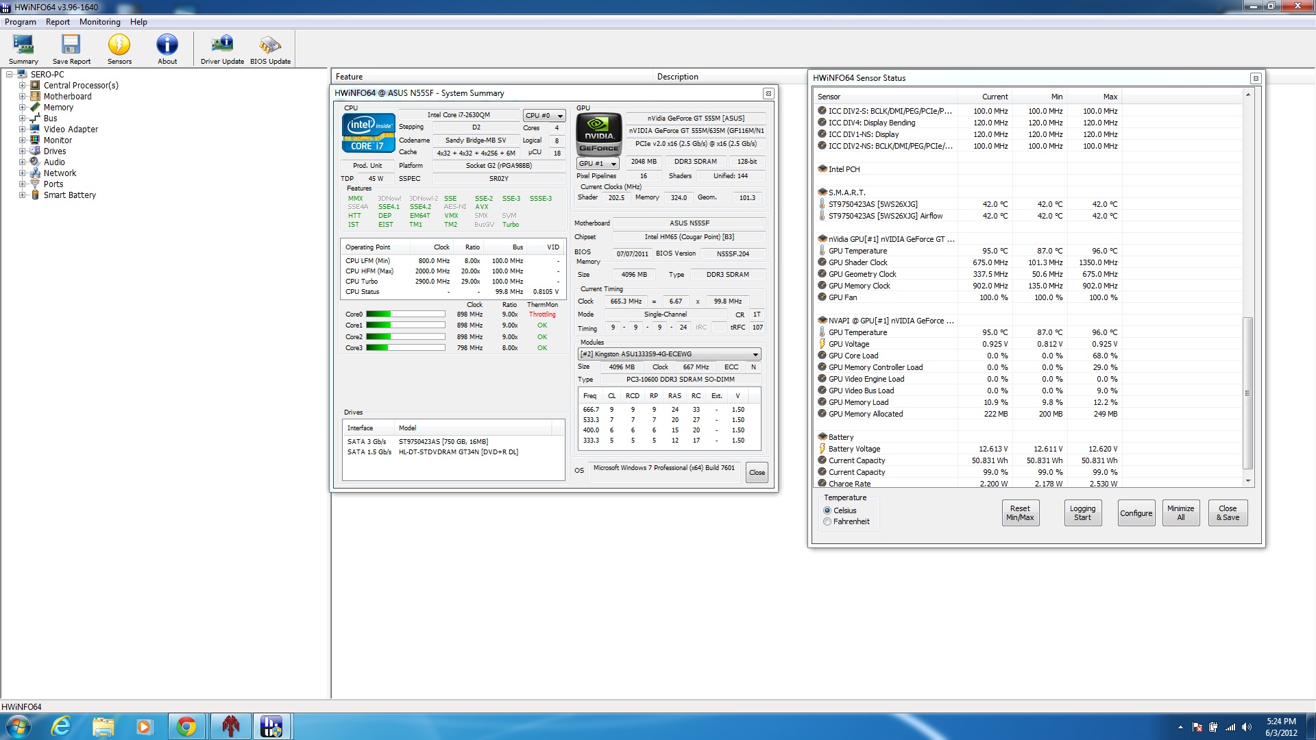 i've already checked my temp it doesn't exceed 90 C, and the drivers are all well updated, no yellow mark in device manager. I also tried to set the GeForce GT555m as primary device from Nvidia Control Panel but with no effect, im seriously asking myself if it isn't a hardware problem (P.S. i've bought my system 7 months ago, isn't too early to have a hardware failure? and my graphic devices have the optimus technology)