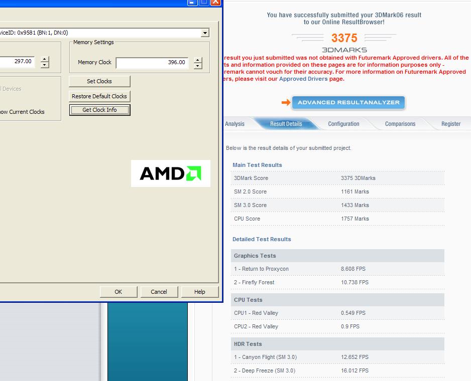 Tried now with AMD gpu clock...set to 400/500 and they seem to stay so i ran 3DMark06 -> 2800 -