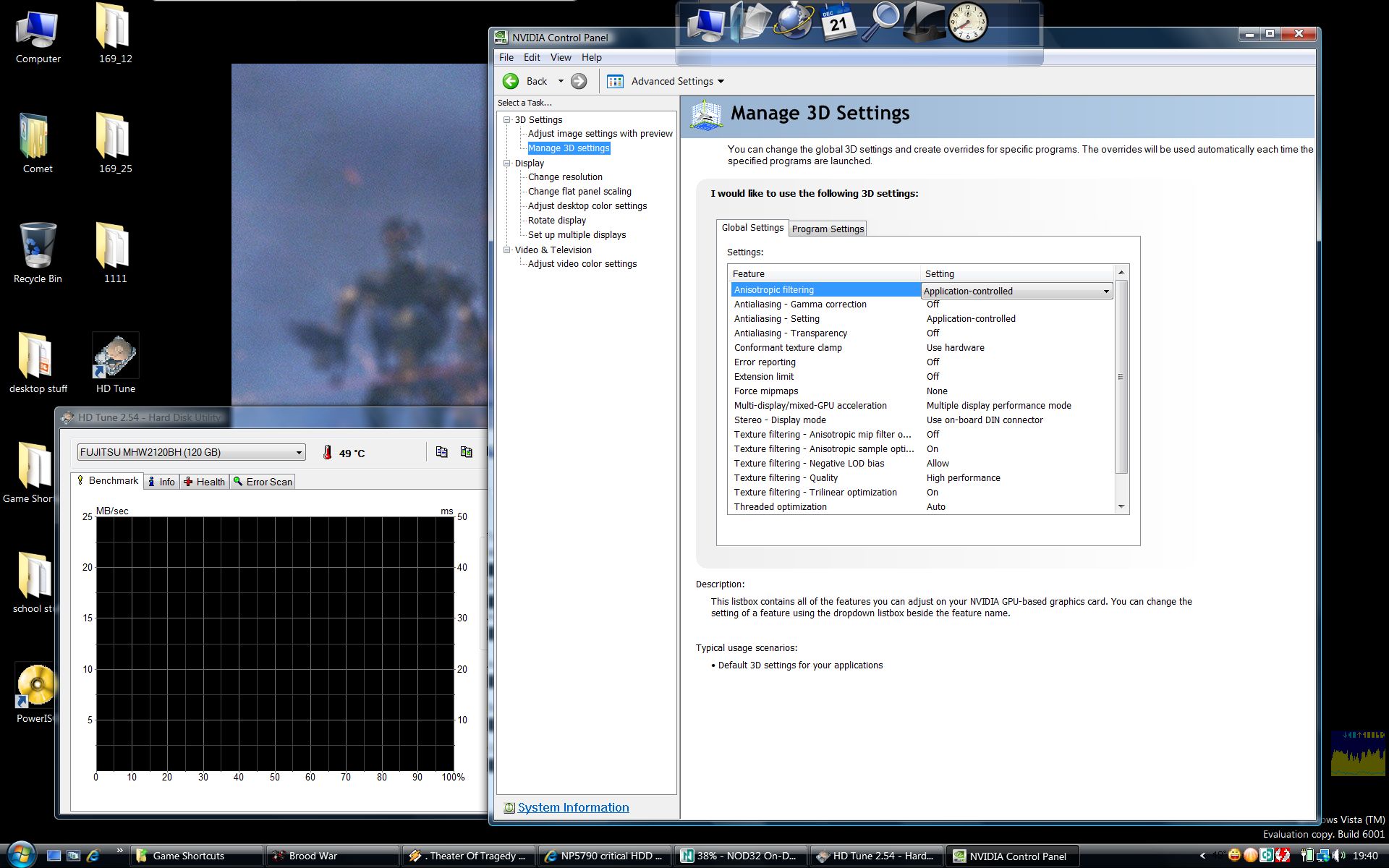 @ original poster - as noted, you'll want to update your drivers to the latest ones. I like 169.04. Also, get rid of AA; AF does not have much of an impact on performance in my experience. -