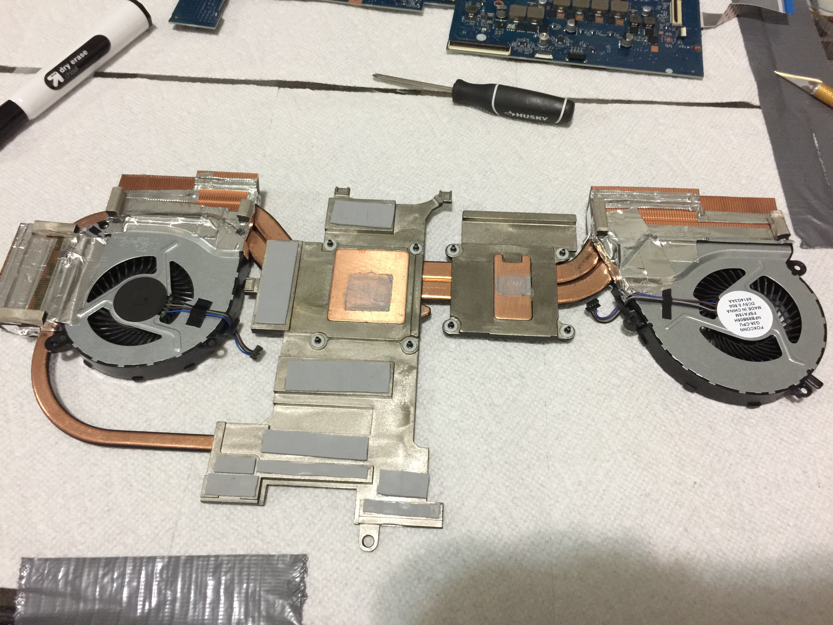 After heatsink tape up + liquid metal on CPU and GPU