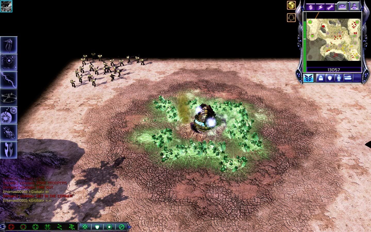 Well, here is a screenshot-story of a recent match I played against a very good player named Eigermann. He was GDI and he used some great strategy against me. Mammoth Tanks, well placed Sonic Emitters of course, as well as Zone Troopers....Grenaders...even Juggernauts....anyway here they are...