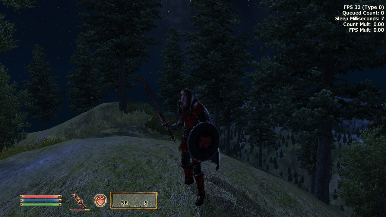 I'll post a screenshot of mine when I get home from work. By the way I just wanted to say I get around 20-28 fps with some occasional drops to 15 fps sometimes when I play at 1920x1200 riding a horse outside with the low poly grass mod, Qarl's texture replacements, Qarls Parallax, Natural Environments, Better Water mod and a few others and my heavily modifed .ini file. I must say I'm pretty impressed the game is actually playable at this high resolution and it looks just gorgeous and all this on a Dell XPS M170 with a 7800GTX 256 MB Ram, 2GB of DDR2 Ram Memory and a 5200 RPM, that soon will get upgraded to a 7200