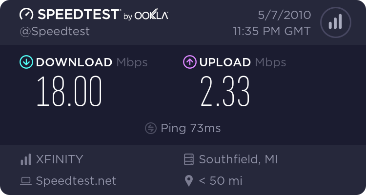 My result for my work internet is