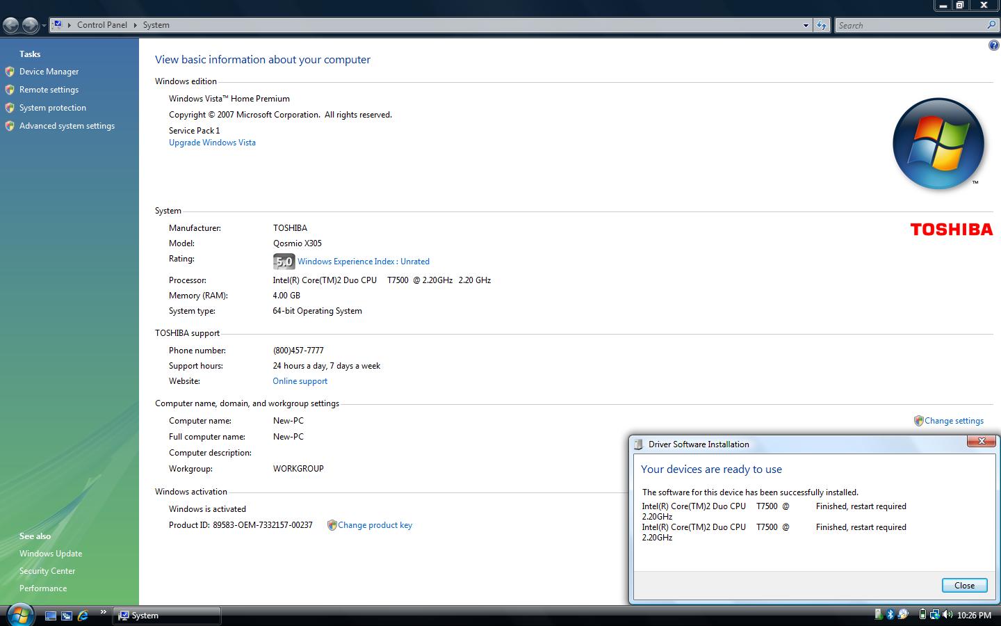 Well, I haven't put the screws back in the bottom of the case yet.. but that's cause I didn't want to have to take em back out if the laptop didnt boot. Well, good news is I have only taken the x305 apart once. The BIOS didn't hiccup.. I took pics of the MOBO, Hi-def for whoever was asking for some. I took quite a few just cause lighting didn't look great, hope you find what you were looking for. I'll post them later just cause I'm sure 7 Megapixel pics will take some time to upload. However, I am posting a couple pics here right now showing the drivers being isntalled and the WEI before and after the upgrade. I'll post some of cpu-z as well.