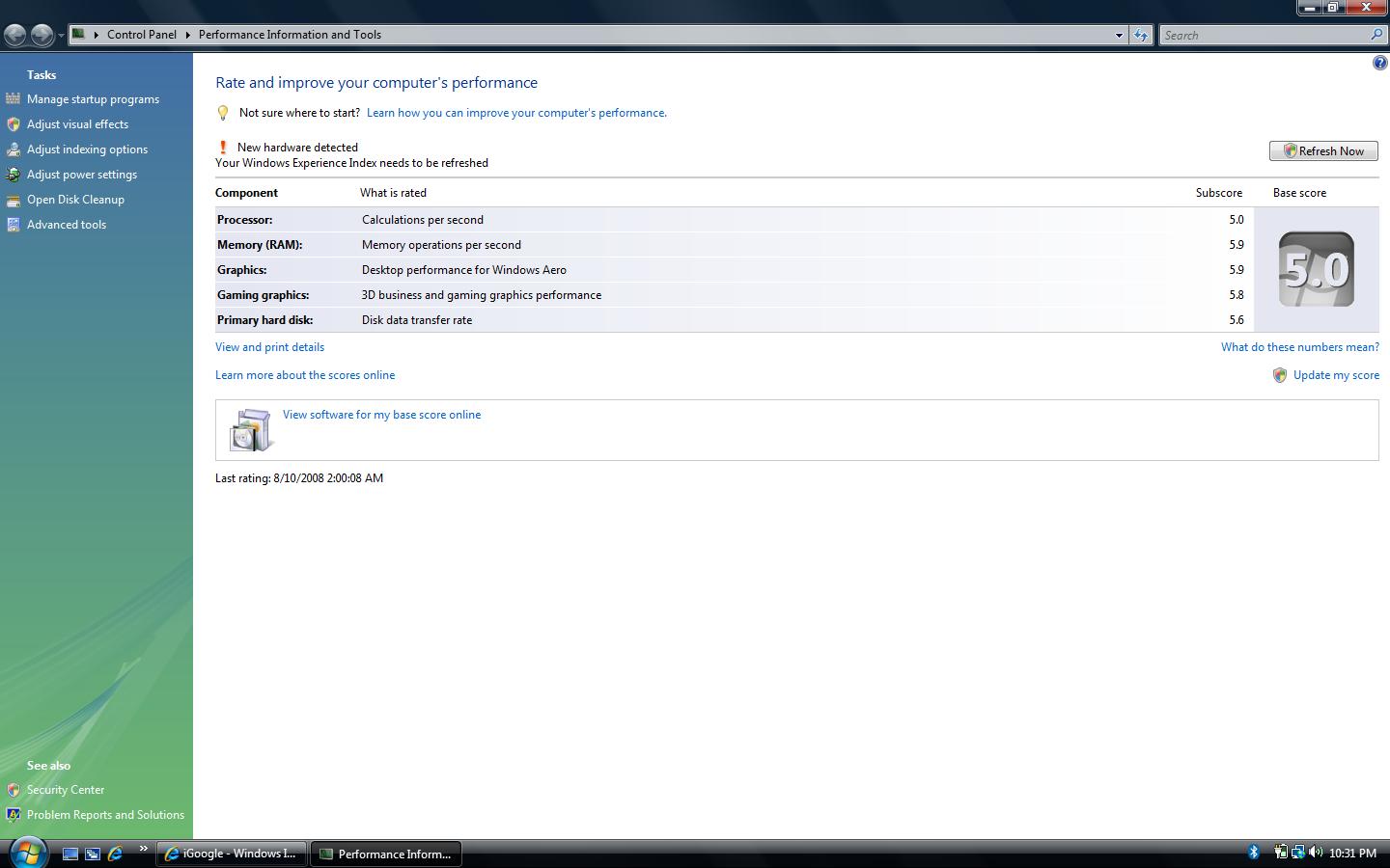 Thank you. I believe you're running 32 bit Vista Ultimate, correct?