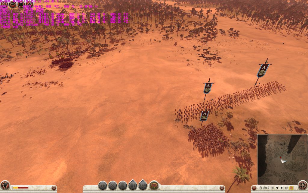 well for me it was pretty real, the units would take around 5-7min to reach the first enemy units in the prologue battle, then more than 20min to reach the siege unit on the other side of the hill. Basically all 2 hours that I logged at first on rome 2 were of that battle, I think I spent 5 min on the campaign map and gave up, since it was really laggy, btw all that was on low, everything on low. Today Im playing on medium. wednesday I did try to do some settings change, so I ran the benchies, the units were stuttering when they walked, today they aren't, neither on low nor medium