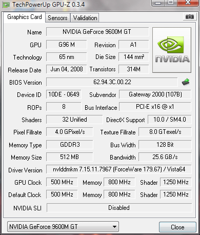 I have an Acer 5930G which contains 9600m GT GDDR3 inside.