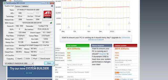 A funny story too - my buddy who has a 2-year old Toshiba A200 with HD2600 and who didn't know much about OC-ing did an initial OC on that card by 30% on each atribute (that means core,memory,shaders) and ran NO testing at all ... and it turned out that....this GPU works fine up to this day