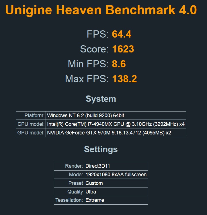 In my case, an upgrade is an instantaneous downgrade. I lose 120Hz, I lose my 3D emitter, I lose socketed CPUs which can OC properly without getting TDP limited like the HQ ones appear to be (even though they are OCable), etc. It may not matter to you, but as far as I can see, if the new machines have a stronger GPU but the rest of the machine isn't as good as mine, a full machine upgrade is a downgrade.