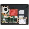 This is the inside of the MSI GT627, essentially the MS-1651 barebone with a Geforce 9800M GS in it. MXM-III cards fit in this chassis fine; it's a tight fit, but you don't have to do anything special. I've used a Mobility Radeon X1900 and a Geforce 8700M GT in this notebook before, and other than modifying the heatsink to work with the 46mm x 46mm heatsink mounting points, the cards work well. They're from an Alienware M5750 and M9700 respectively. -
