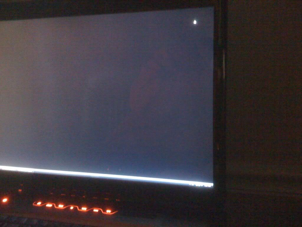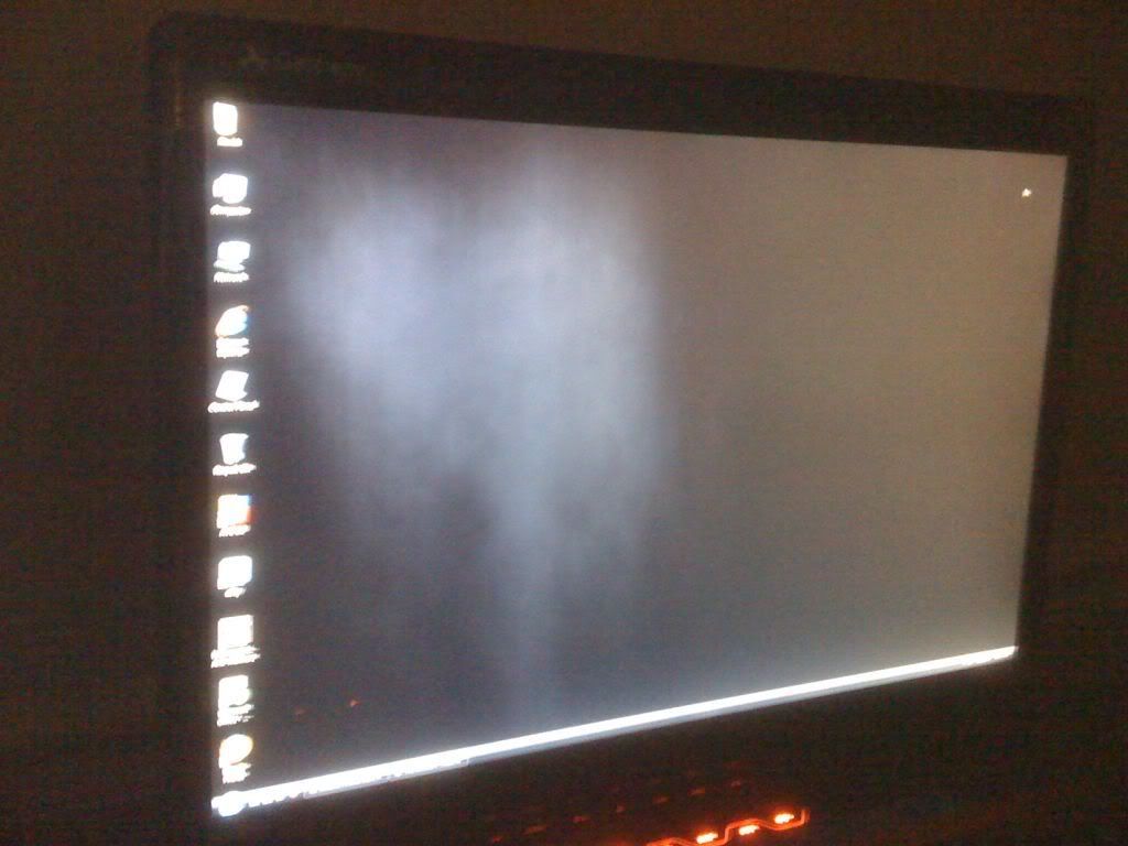 That was the cursor in the upper right hand corner. So, I turned off the computer and tried to use a special cloth that I bought to clean my Plasma TV to push out the air that we suspected was causing the ghosting. After rebooting, I had the same problem. But...