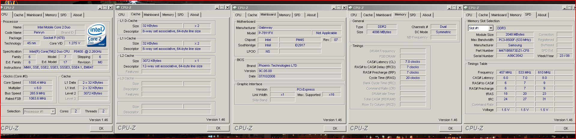 CPU-Z (and I think the HWmonitor log but I can't remember but probably true since it's made by the same people) say the CPU is running at 1.6 GHz while the P8400 should run at 2.26 GHz. I don't know if that affected the previous benchmarks or maybe is just that CPU-Z is not reading the new chips correctly or maybe I should just go to sleep.