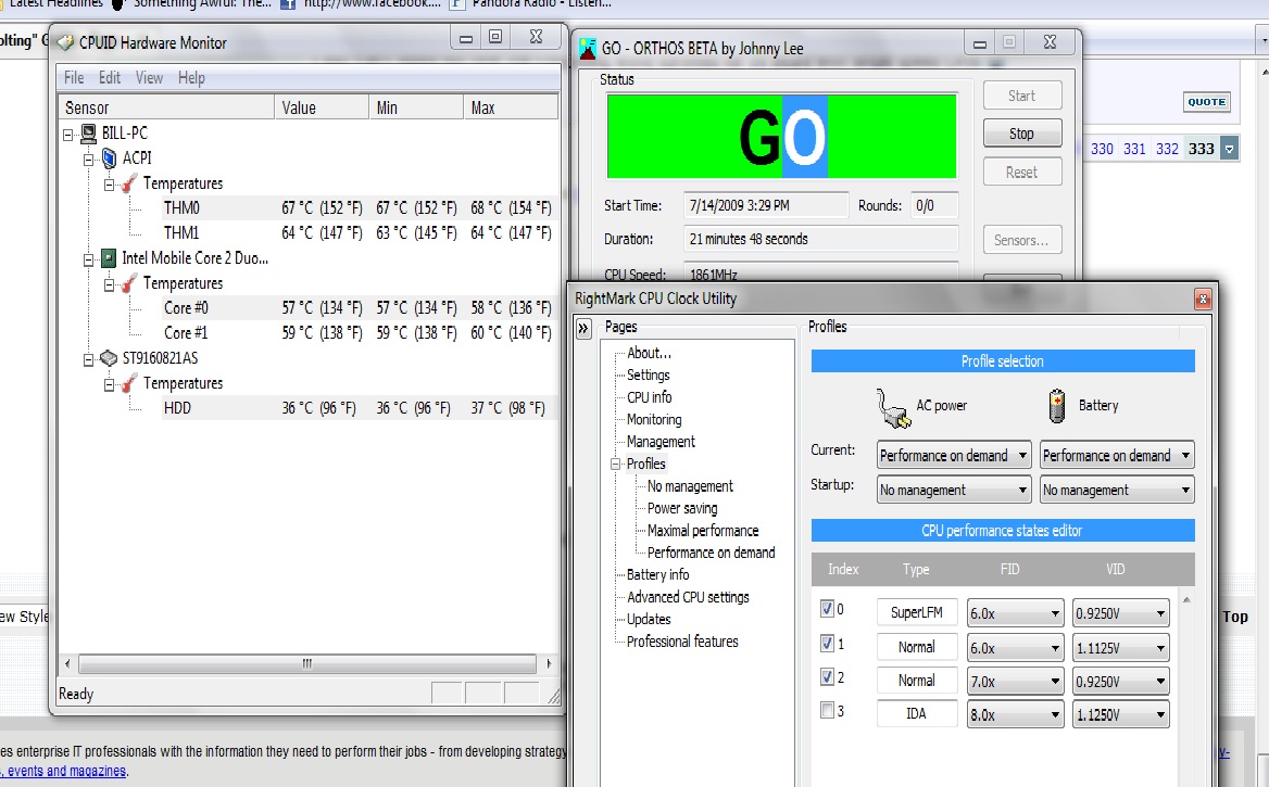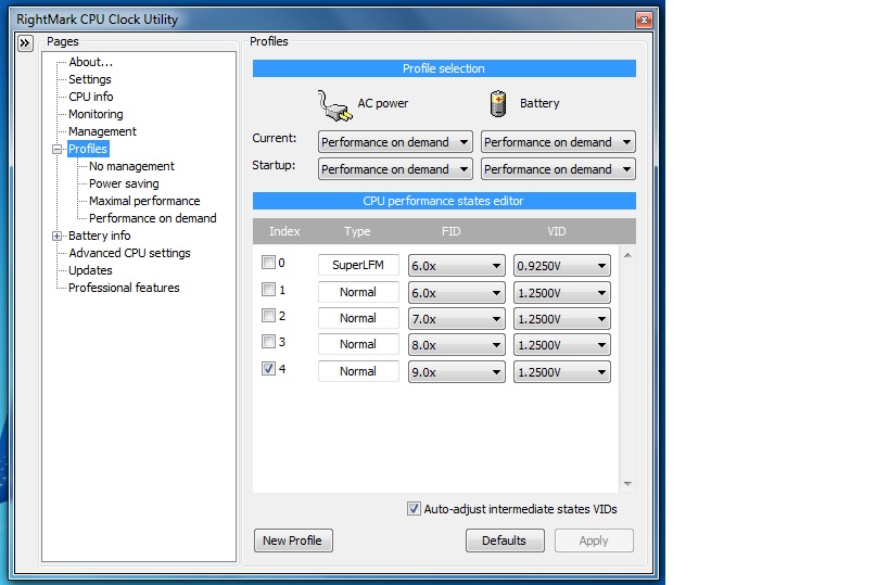 I just did a reformat of Vista Ultimate x64 on my laptop and now as I soon as I enable P-State Transitions in the Performance on Demand profile and change the management to Performance on Demand and click Apply, my system freezes.