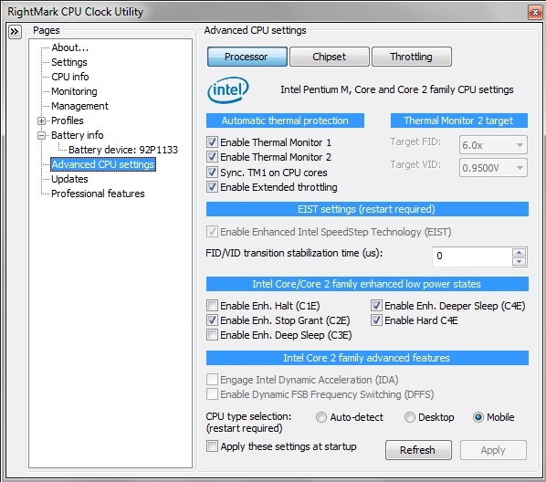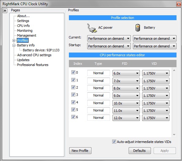 I set up RMC on my thinkpad T60 while trying to cope with a noisy fan. Almost a year later, I've dropped a new fan and HS in and upgraded from XP to W7, but I kept RMC because I was enamored with the drop in temps (and fan noise) and extended life it gave my aging battery. Now I'm wondering if I should "untick" the intermediate states in my "performance on demand" profile. I never realized that the xp to w7 jump had such dramatic consequences on how the cpu was used. -