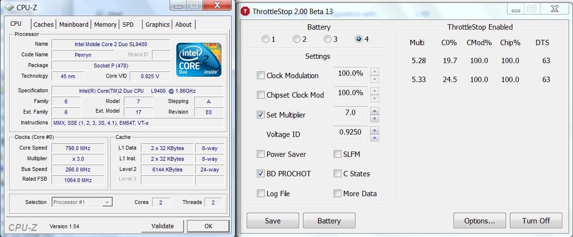 JTravers: I was just talking to a friend today who found a way to trick his P8400 so that it can use IDA mode on both cores full time. That would be a nice addition to ThrottleStop if I ever get that figured out.
