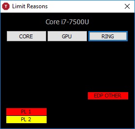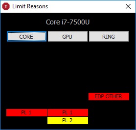 EDIT: Tried Limit Reasons over lunch. Didn't know how to stress test GPU like XTU has built in so I just ran that. EDP OTHER and PL1 for the GPU light up red continuously, Core PL1 turns red every couple of seconds and then turns to yellow again.