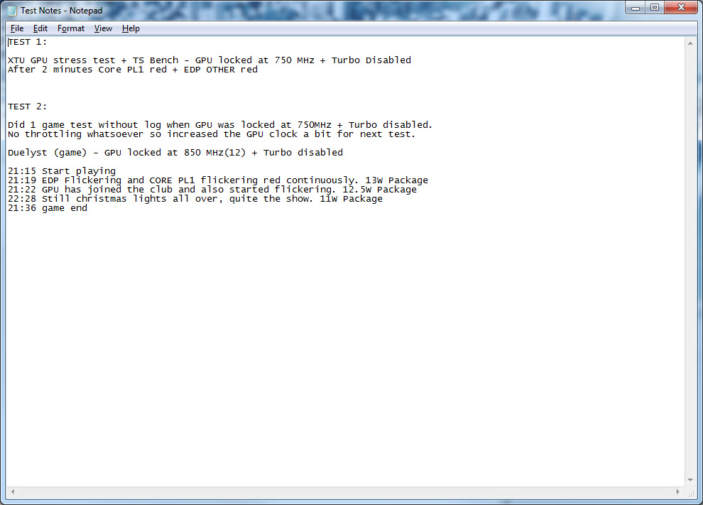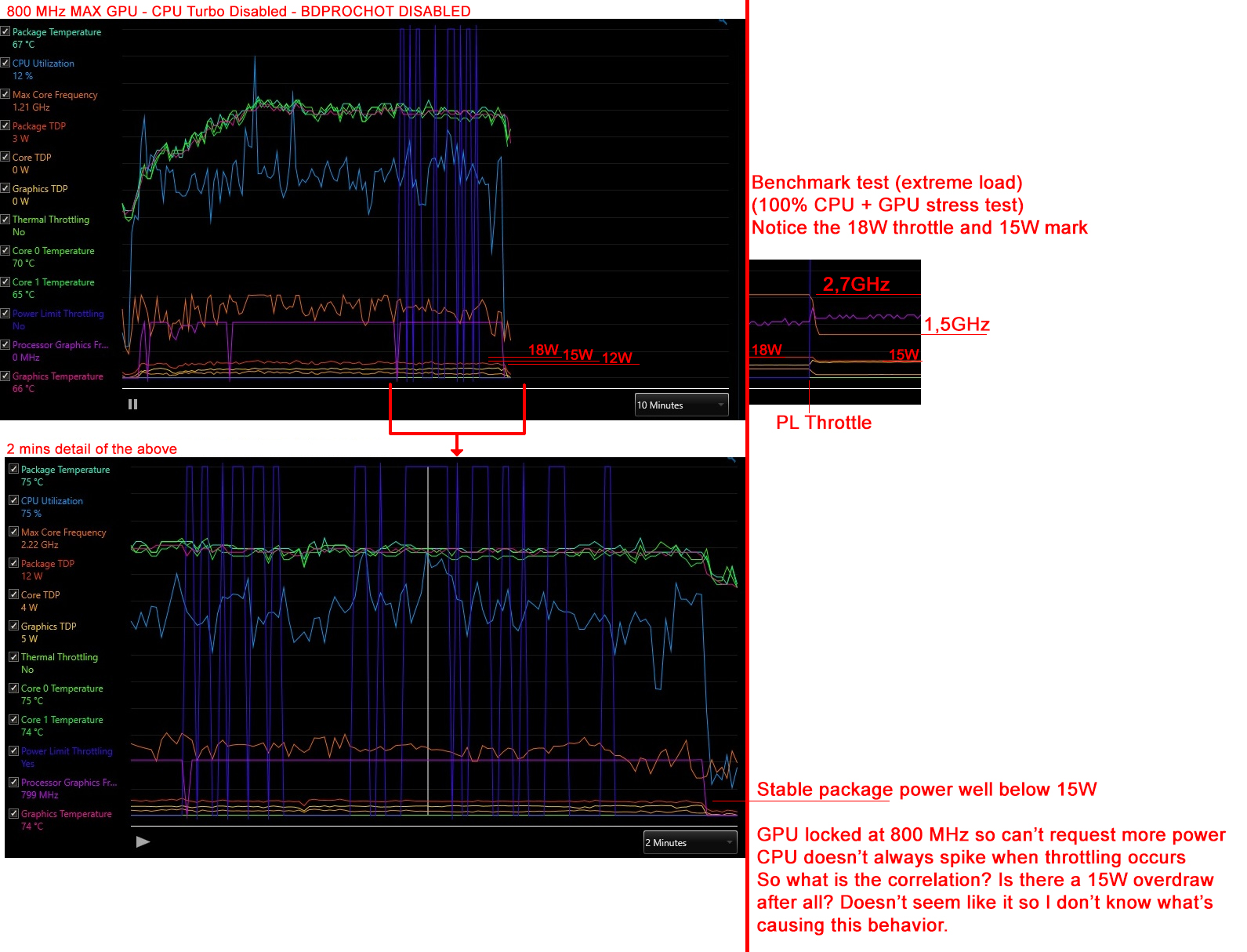 During former tests whenever XTU reported PL throttling the TDP throttle lit up on the TS main page as well so there's that... I didn't alt tab out of the game to check on the TS main panel if it was lighting up but I guess we can assume that it would've been. But it wasn't over 15W! I'm terribly confused here :/ If there's any fallacies in my analysis please let me know!