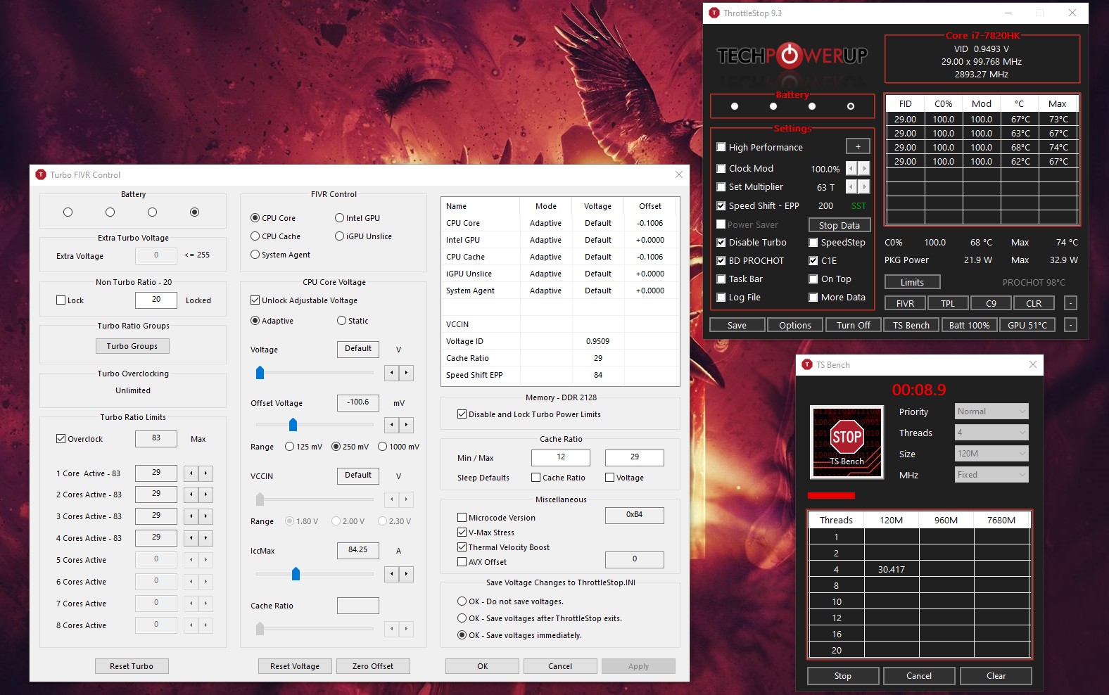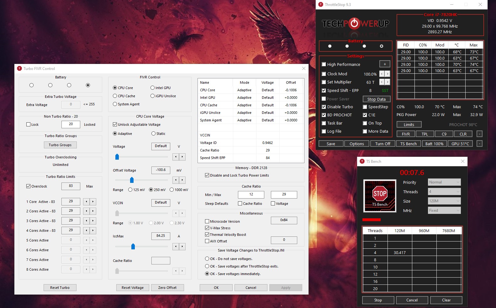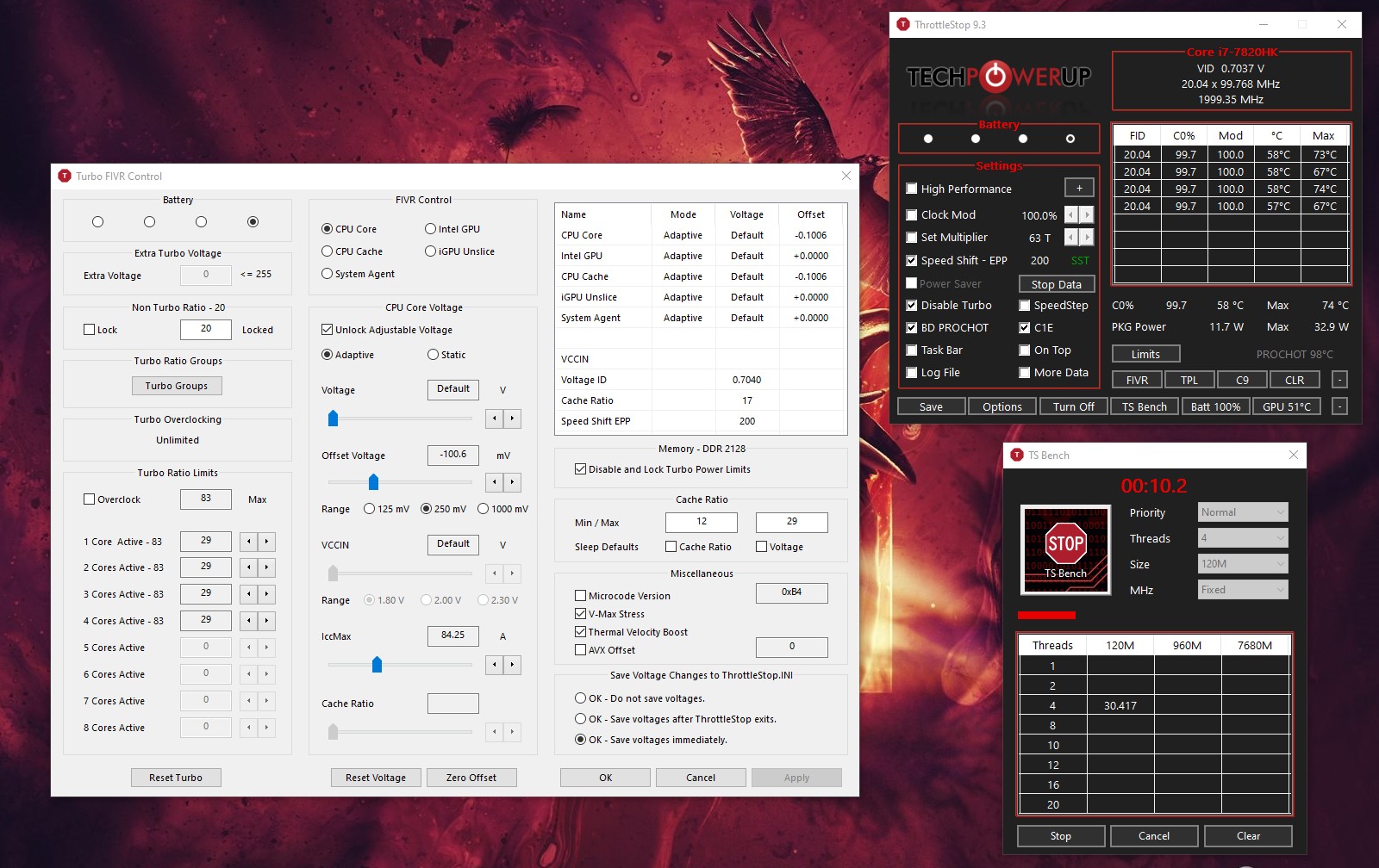 @Kers - Do you have the FIVR - Disable and Lock Turbo Power Limits box checked?