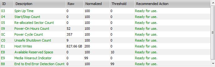 I am a bit confused about my Power-On Hours Count, however. The description of what this indicates wasn't entirely clear from the manual, but I'm assuming it can't possibly be a literal hour count seeing as mine reads 52 and I know that I have used for an overwhelmingly longer period of time than that.
