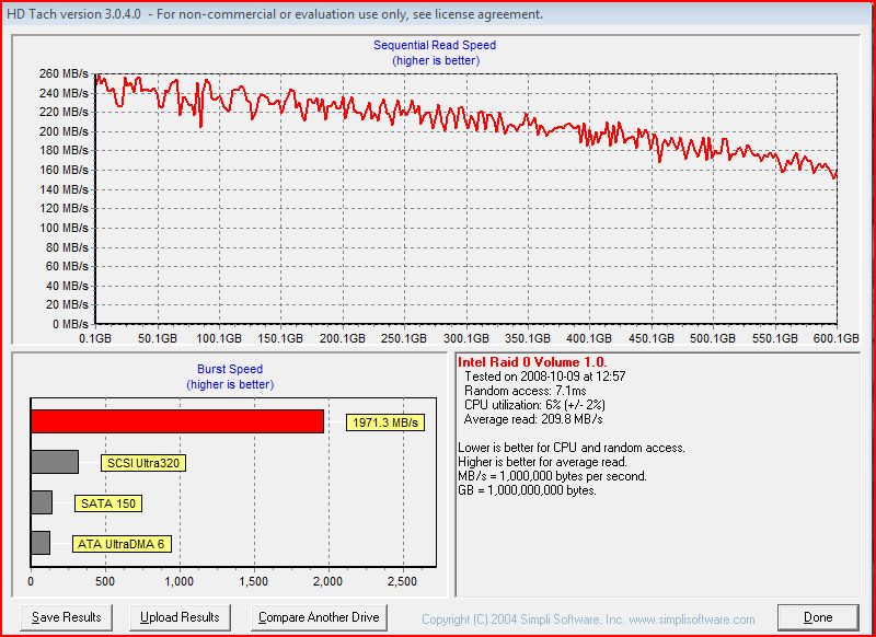 These benchmarks are almost three years old, and from an earlier X38 chipset desktop motherboard from Asus. The drives are currently installed on an EVGA X58 motherboard. Your throughput may be about 10% slower due to the fact that you have dual 7200 rpm hard drives...but your performance is NOT shabby by any means.