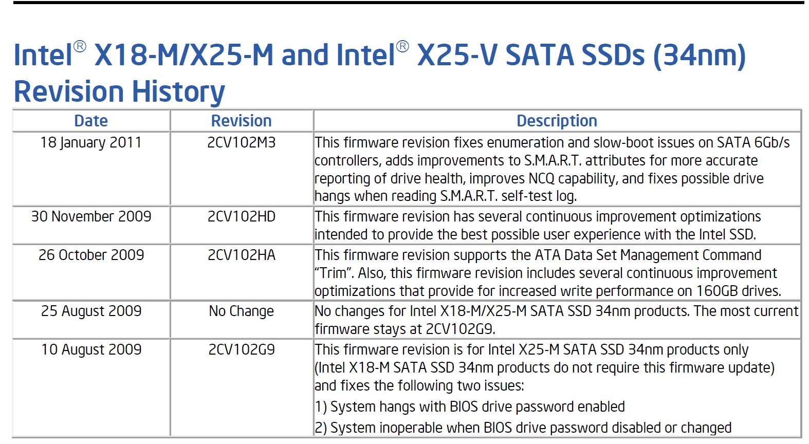 I checked all the firmware revisions from Intel....and I know that the firmware on our drives was the one where it supported TRIM. We do not have the most up to date...I believe we are two behind...