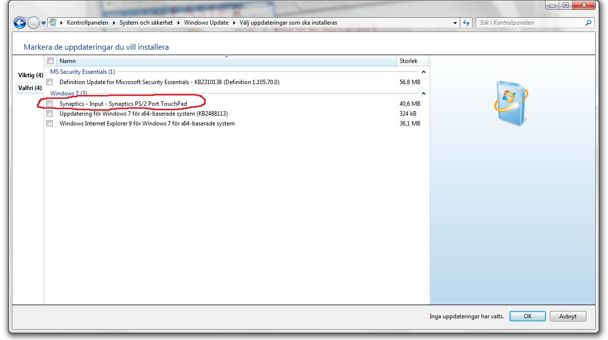 And I attached a picture of my Windows update, it's not the same synaptics in there cos there's some kind of update for it.Attached Files: