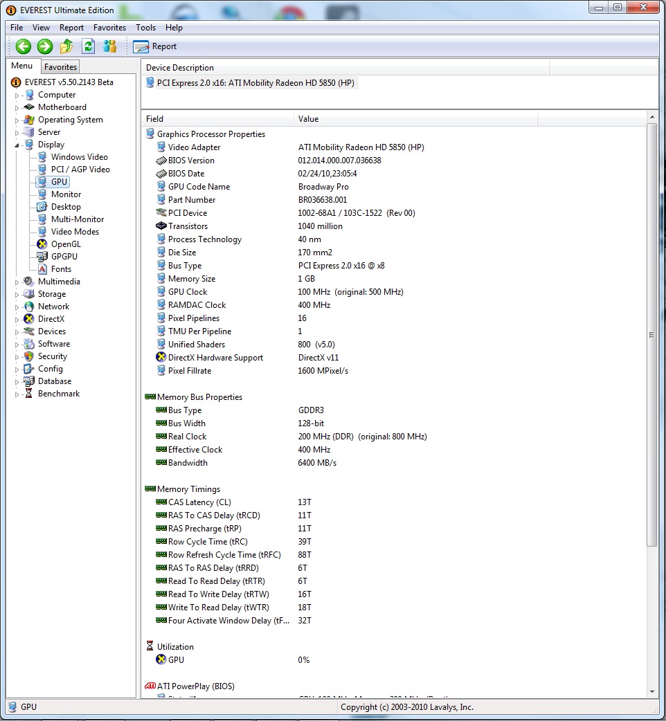 Everest sees the gpu on the hp as the 5850... If you run a app like gpuz or cpuid you will see that it is a 5830....